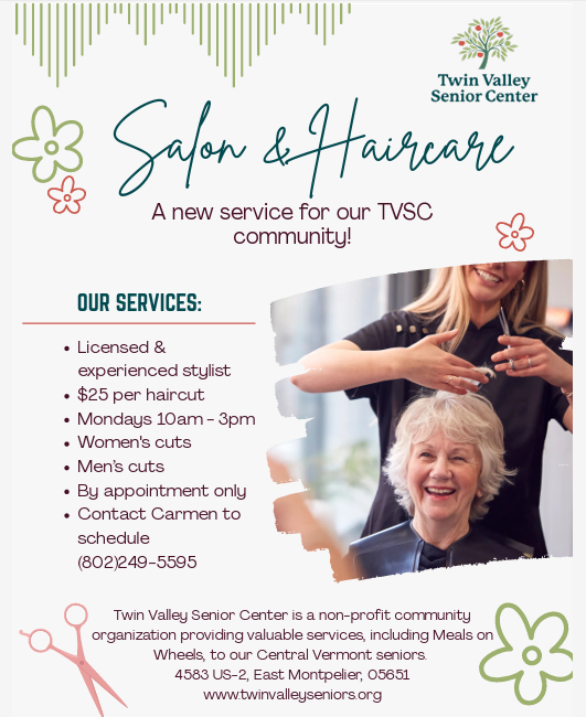 Get Involved Today: Call us: 802-223-3322 or Email: director@twinvalleyseniors.org