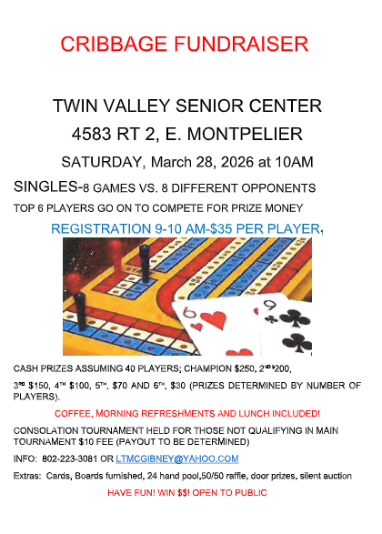 Cribbage Fundraiser - March 28